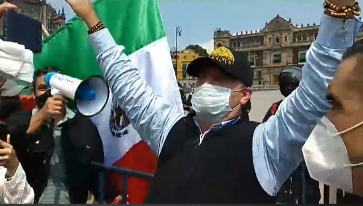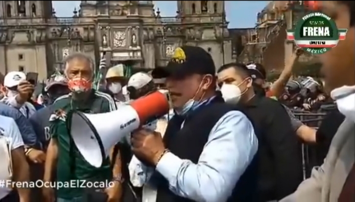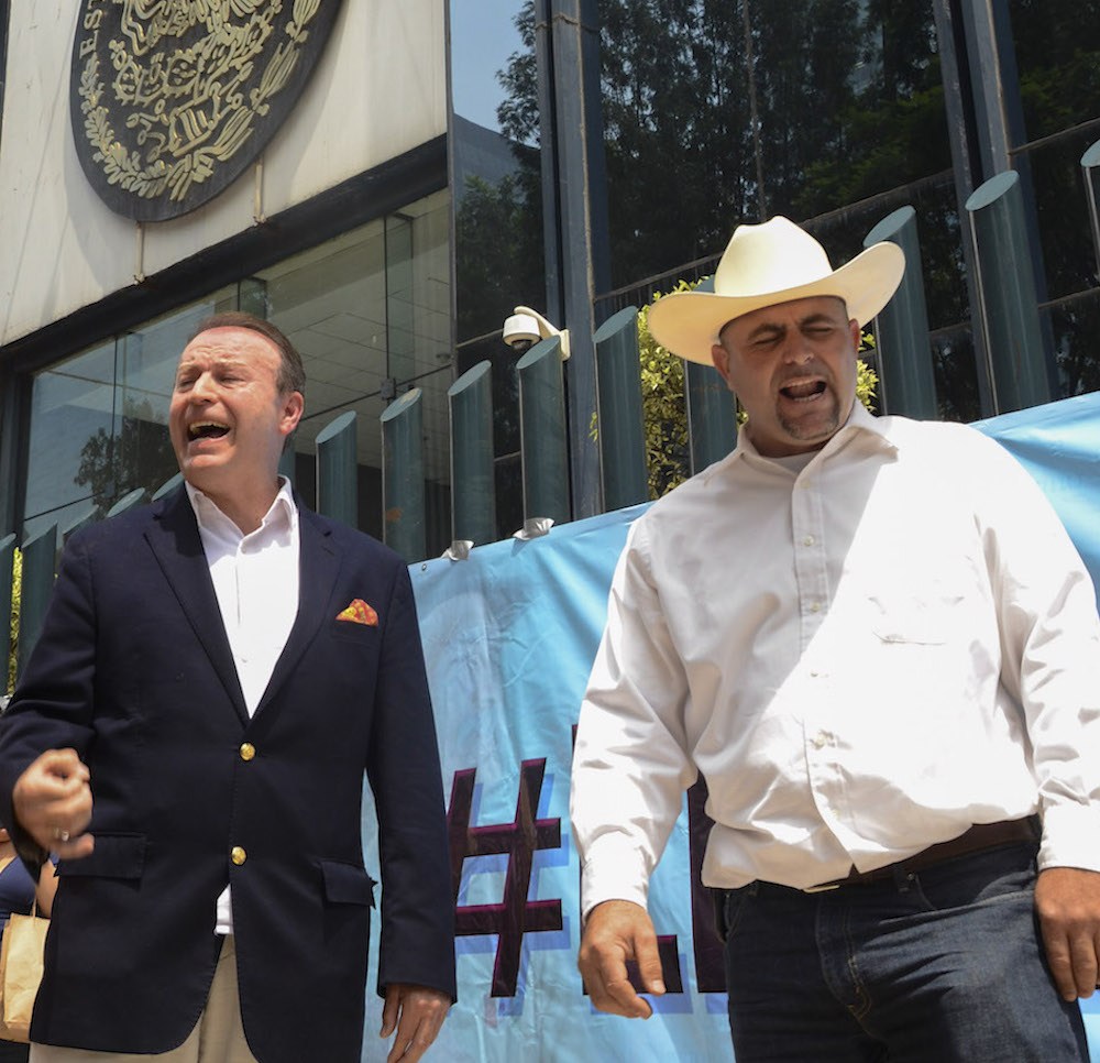 MÉXICO, D.F., 24JULIO2014.- Gilberto Lozano, dirigente del Congreso Nacional Ciudadano, Julián Lebarón y Thalía Vázquez, abogada del Dr. José Manuel Mireles, fundador de los grupos de autodefensa en Michoacán, encabezaron un mitín afuer de las instalaciones de la Procuraduría General de la República, en donde solicitaron la libertad del dirigente.